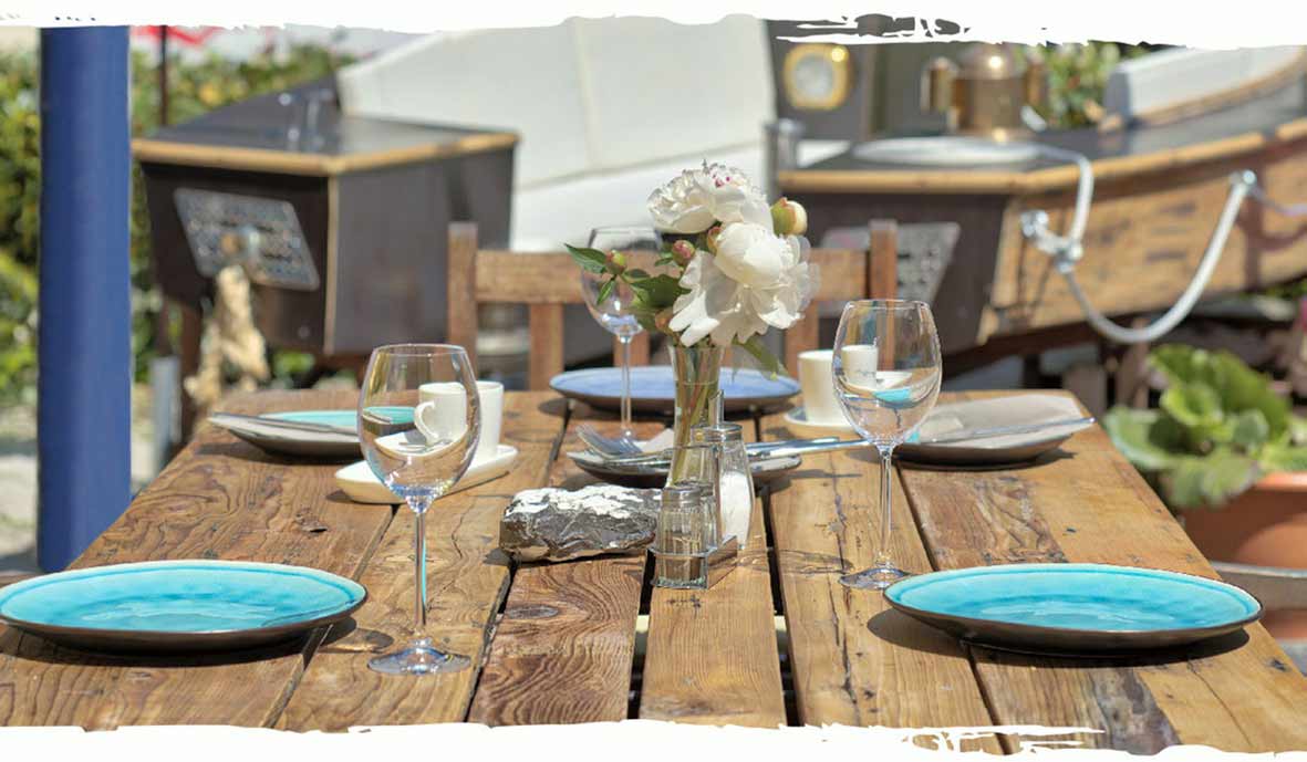 Es beginnt bereits bei der Begrüßung der Gäste, die geduzt werden. So soll eine persönliche Nähe geschaffen werden. Eigene Akzente setzt das „bunte“ Haus, das man bei der Anfahrt am Stadtrand am Anglersteig 2 gleich erkennt. Die Inhaber wollten ein Haus der Freiheit und Emotion schaffen. Kunstvolle Möbel wie Tische, Bänke, Lampen und weitere Gegenstände aus Holz im Haus wurden von der Rostocker Künstlerin Wencke Burtzlaff aus altem Treibholz gefertigt. Im Foyer-Bereich befindet sich ein Kamin, der zum Backen und Kochen genutzt wird, wobei Gäste zuschauen können.