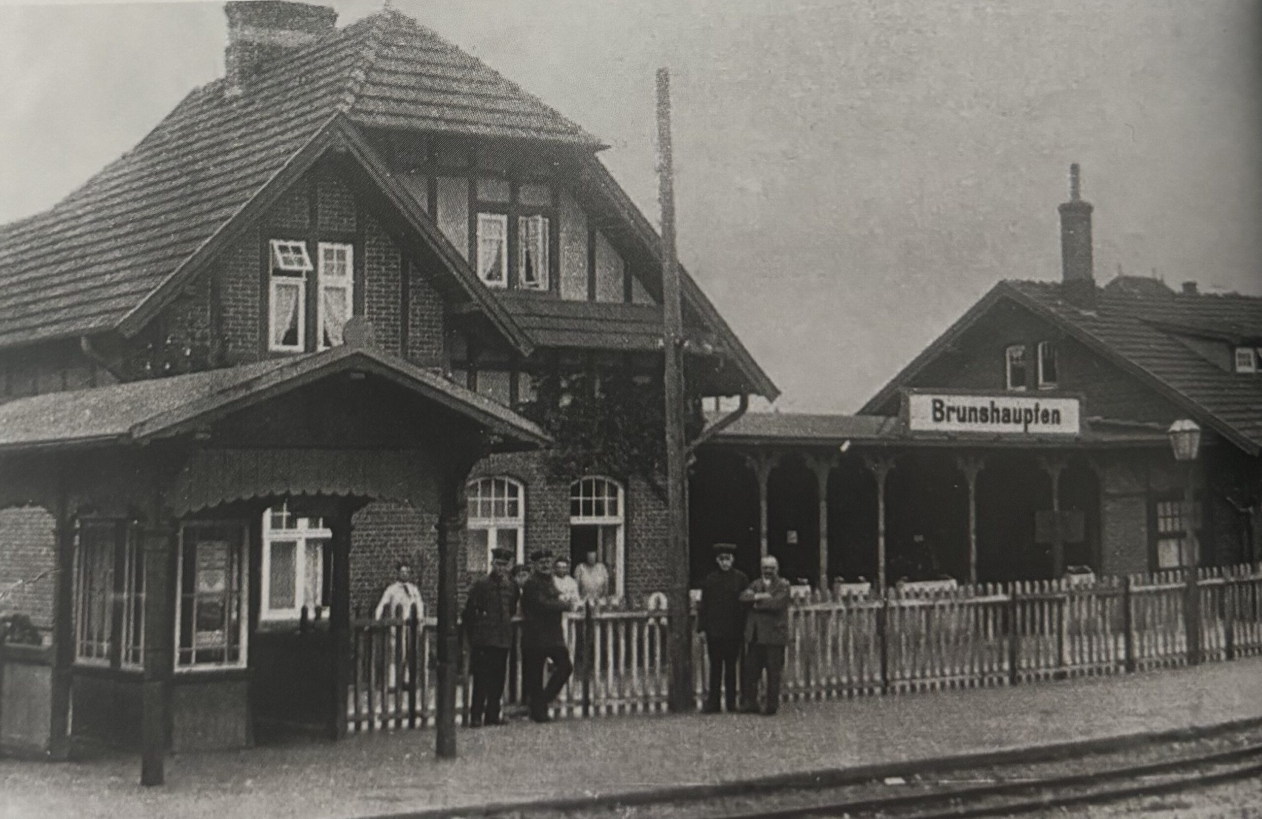 Das Gebäudeensemble, bestehend aus Empfangsgebäude, Wohnhaus, Toilettenhäuschen und dem heutigen Restaurant „Gleis 2“, erzählt vom Beginn des Bahnzeitalters in Brunshaupten – dem historischen Ortskern von Kühlungsborn. Der Bau des Bahnhofs begann im August 1909. Zimmermeister Pobanz wurde mit dem Projekt betraut, und schon im Oktober desselben Jahres stand der Dachstuhl. Südlich des Hauptgebäudes entstand gleichzeitig das Wohnhaus des Bahnhofsvorstehers. Zwischen beiden Gebäuden wurde eine Restaurationshalle eingerichtet, die im Februar 1910 an Herrn Storm aus Warnemünde verpachtet wurde. Am 27. Februar rollte der erste Arbeitszug in Brunshaupten ein, und am 12. Mai 1910 wurde der Bahnhof feierlich eröffnet.